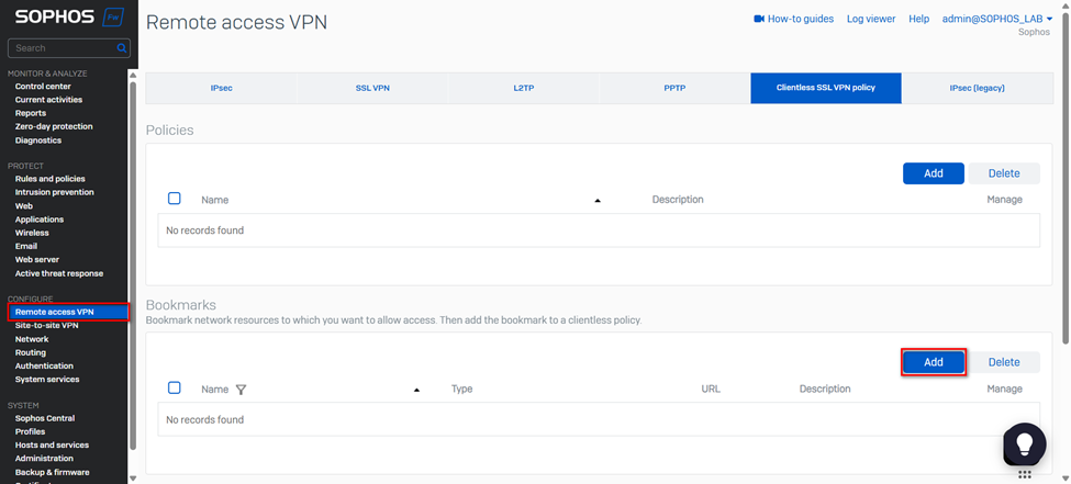 - Vào menu: Remote Access VPN → Clientless SSL VPN policy → Bookmarks