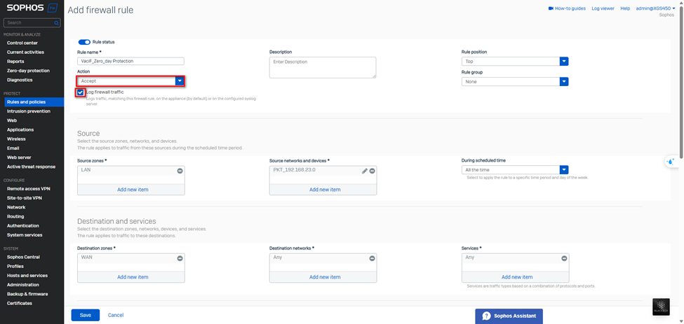 • Tạo Firewall rule và bật tính năng Zero-day Protection
