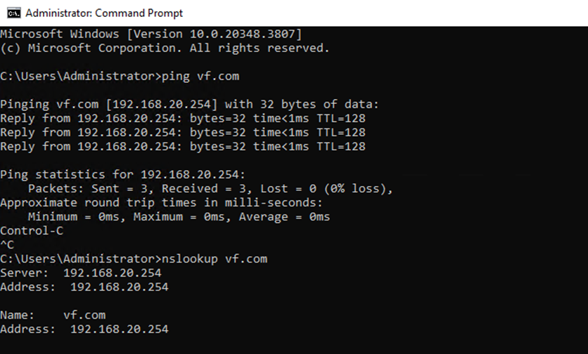 Nếu kết quả phản hồi đúng IP DC thì có thể tiếp tục.