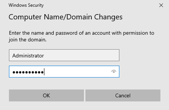 • Nhập tài khoản domain (VD: administrator / mật khẩu).
