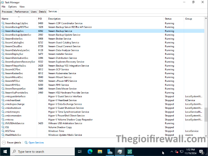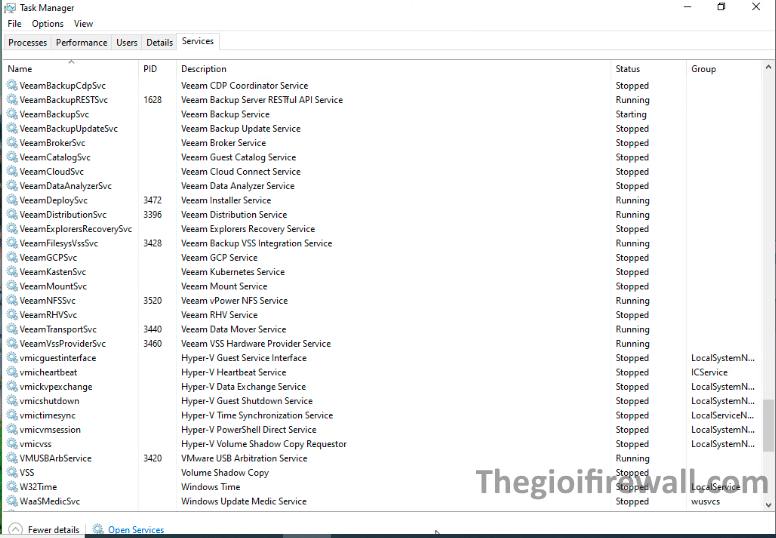 Bạn đi vào Task Manager, lúc này đợi các dịch vụ của Veeam khởi động lên hết là được.