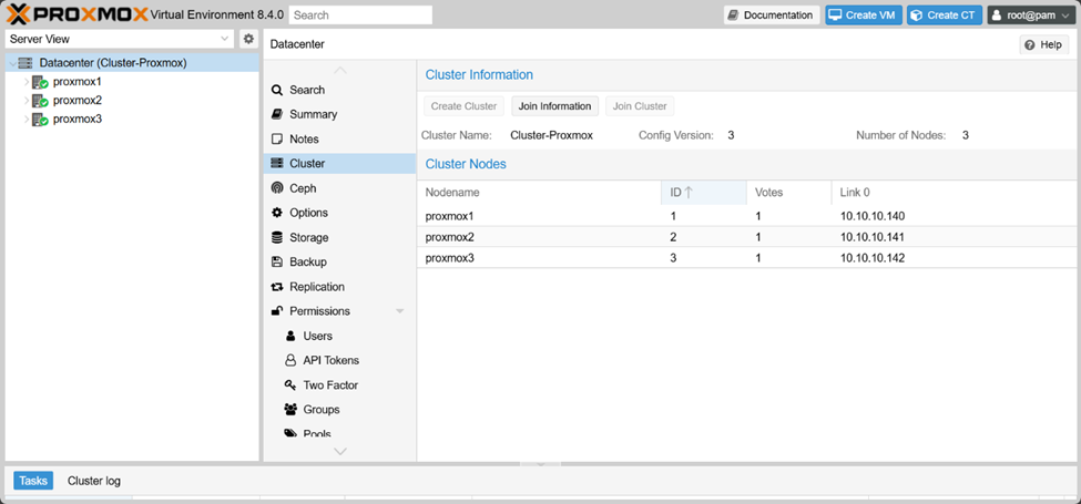 - Đã cấu hình Cluster Proxmox VE với ít nhất 3 node.