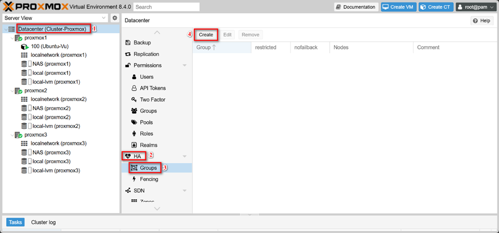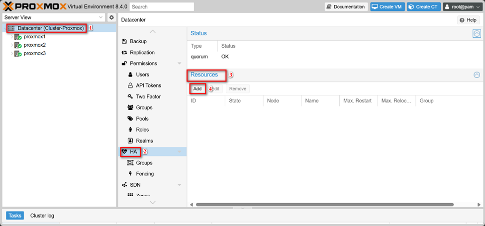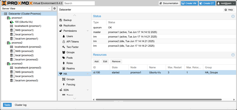 - Sau khi cấu hình xong, Proxmox sẽ tự động giám sát VM và di chuyển chúng sang node khác nếu có sự cố xảy ra.