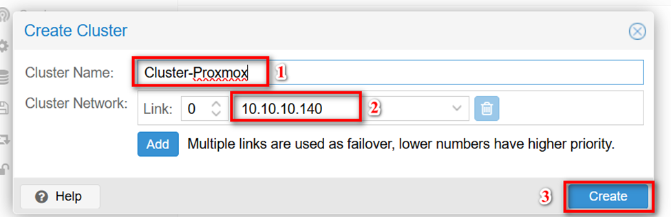 Muốn thêm Cluster cho cách node khác mình quay lại phần Cluster đã tạo ở proxmox1 rồi làm như sau:
