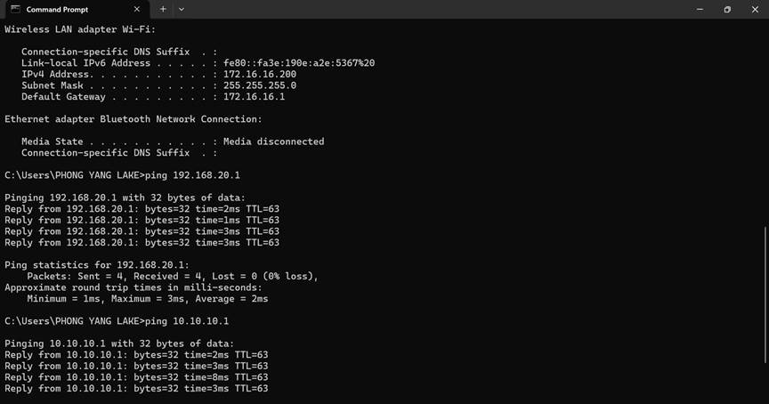 Sau khi cấu hình hoàn tất, các lớp mạng LAN sau có thể kết nối và truy cập lẫn nhau: