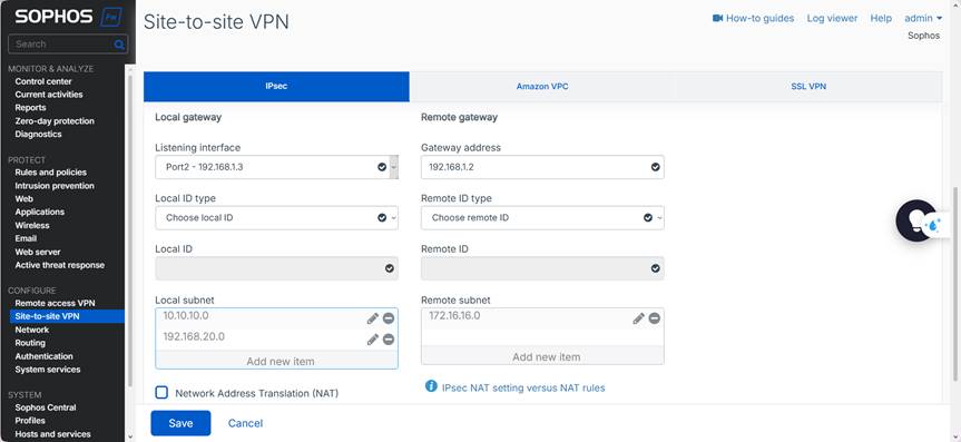Vào CONFIGURE → Site-to-site VPN → IPsec → Add