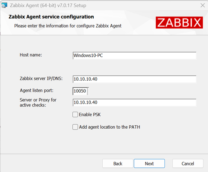 - Zabbix server IP/DNS: IP của Zabbix server.