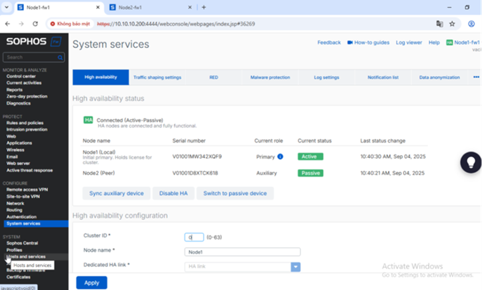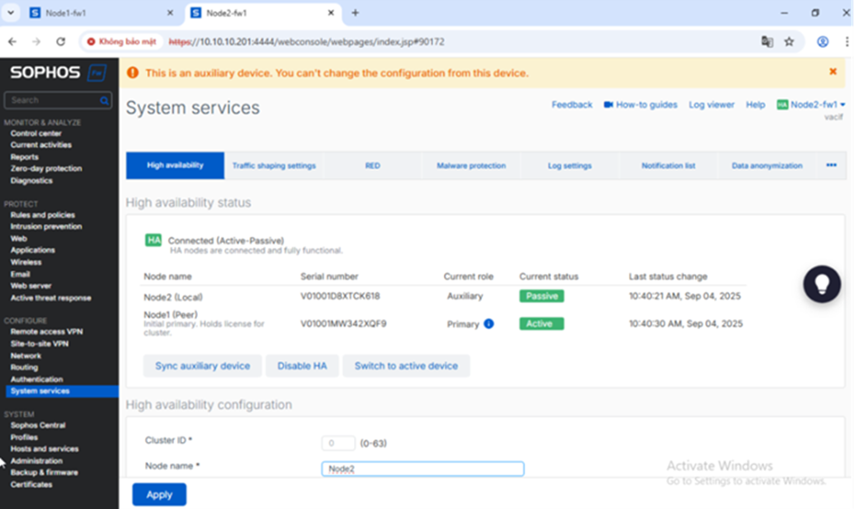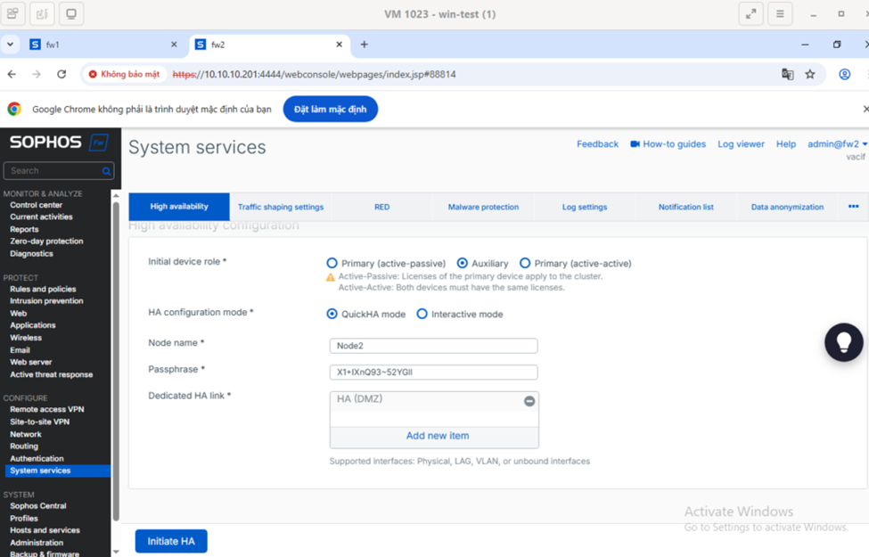 1.2. Tiển khai 2 Sophos Firewall trong chế độ HA (active-passive)