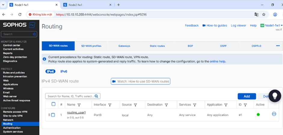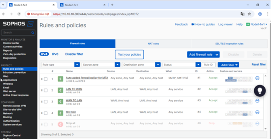 2. Trên node active, tạo mới hoặc chỉnh sửa cấu hình (firewall rule, policy, SD-WAN rule,…)