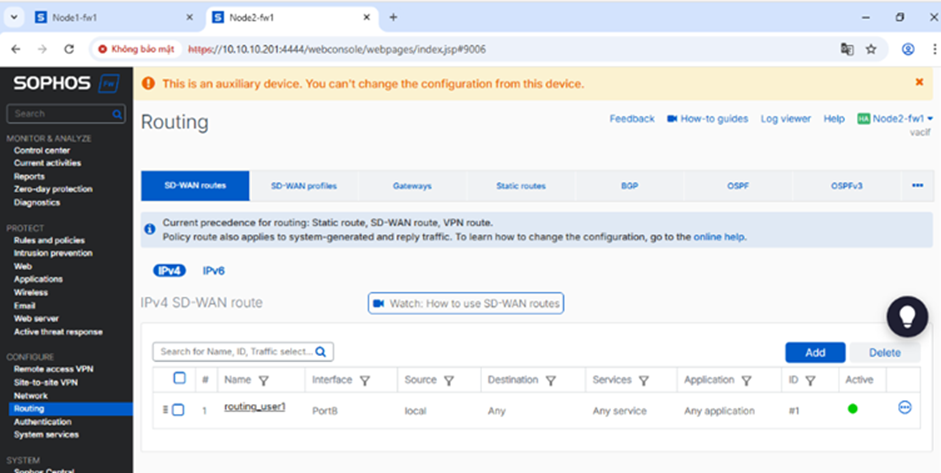 Mô tả: Khi tạo SD-WAN ở con chính primary cũng đồng thời tạo bản sao ở con phụ auxiliary