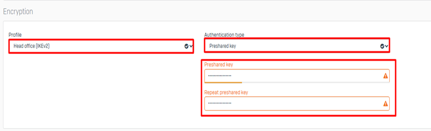 Chọn Authentication type là Preshared key và nhập cùng preshared key trên cả 2 firewall.