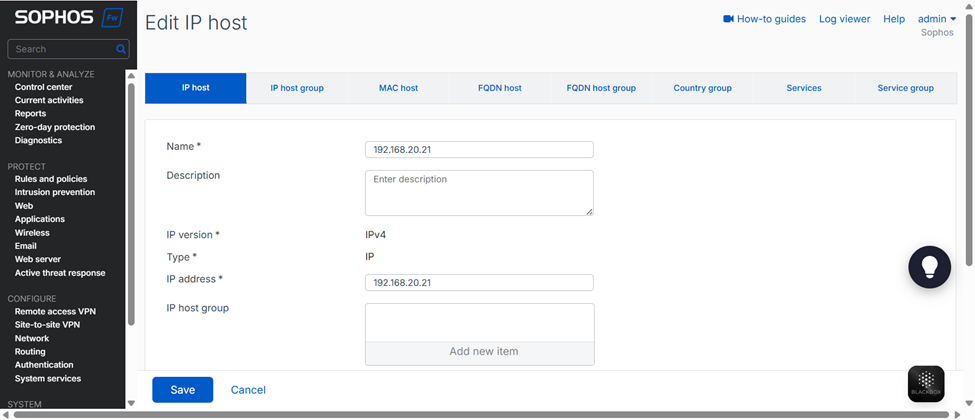 3. Trong phần Source networks and devices, chọn IP Host vừa tạo.