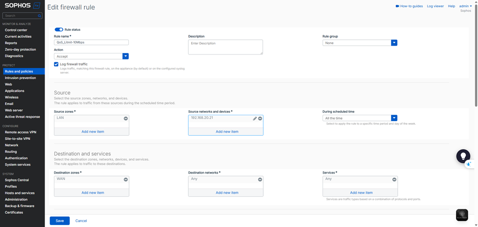 2. Tạo mới hoặc chỉnh sửa rule đang cho phép thiết bị truy cập Internet.