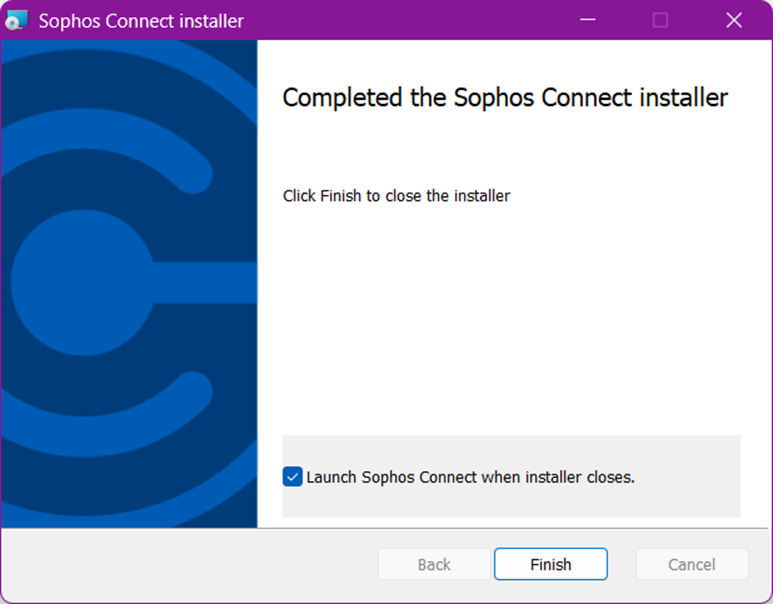 • Chạy file cài đặt SophosConnect_<version>.exe vừa tải về.