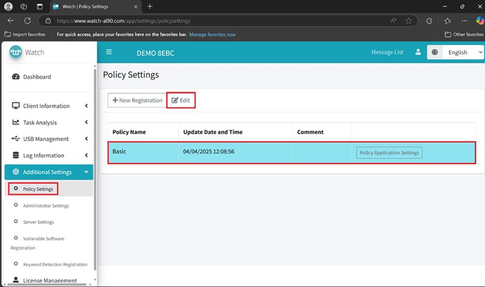 - Sau đó nhấn chọn nhấn Policy Basic -> Edit