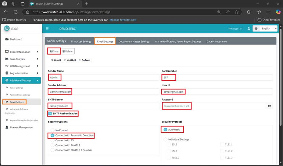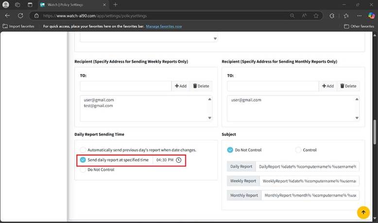 - Daily Report Sending Settings: Chọn cách gửi email thông báo các hành động/hành vi. của máy Client.