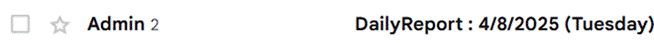 Sau khi cấu hình các yêu cầu từ chính sách và đặt thời gian gửi thông báo về, mail được thêm vào daily report sẽ được nhận email report vào đúng thời điểm hằng ngày.