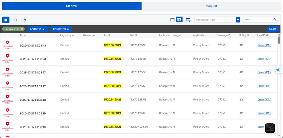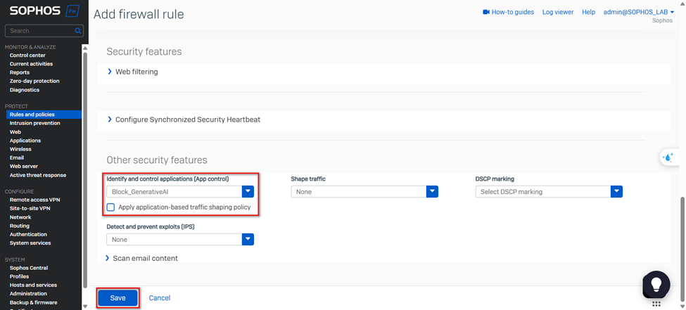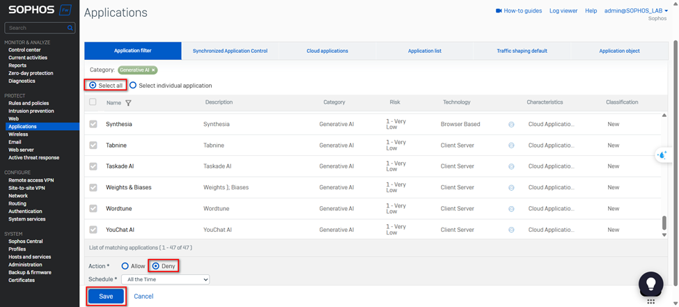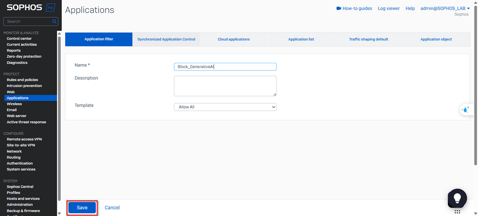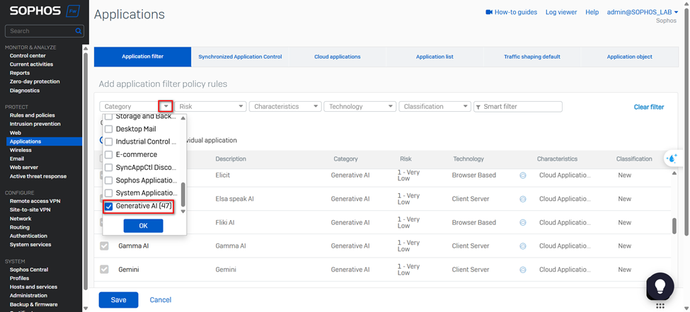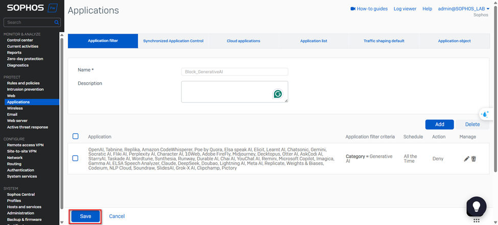 – Cập nhật danh sách app AI mới: Sophos thường xuyên cập nhật định nghĩa ứng dụng, nên đảm bảo firmware và pattern luôn mới.