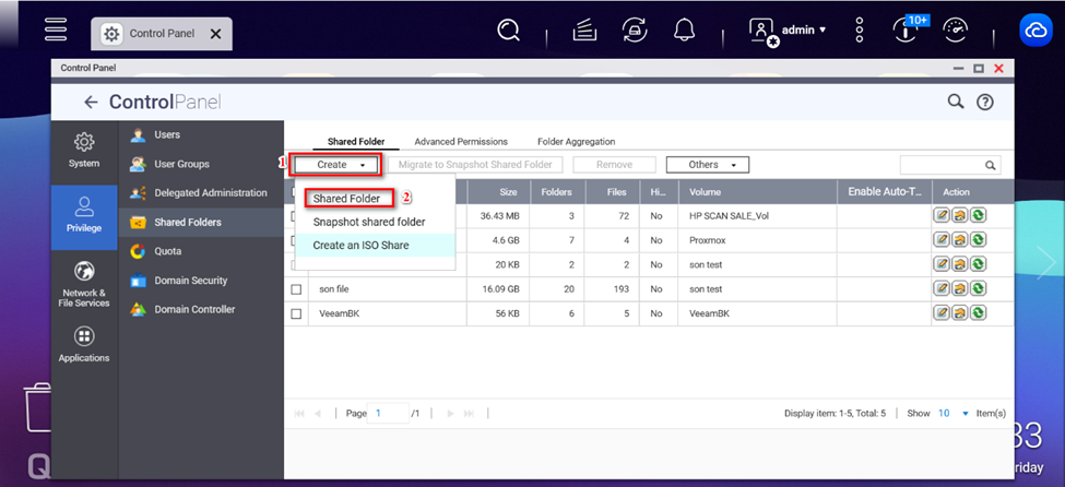 - Vào Shared Folder à Edit Shared Folder Permissions.