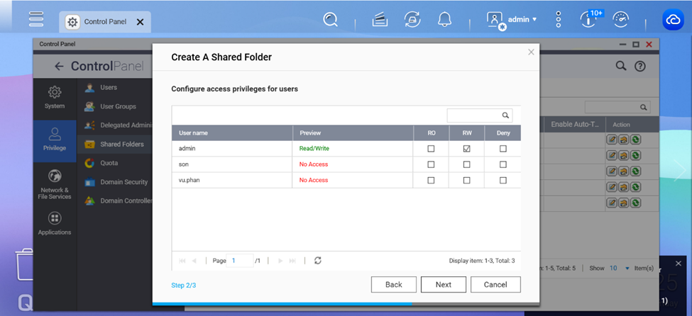 - Tài khoản NAS có quyền đọc/ghi thư mục chia sẻ.
