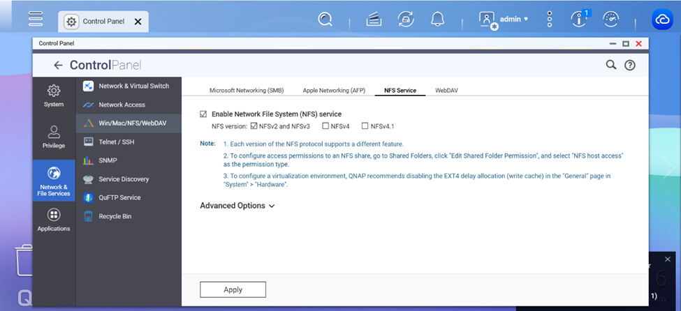 - Vào Control Panel à Network & File Services àWin/Mac/NFS à NFS Service.