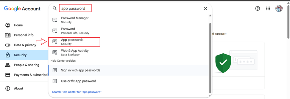Trước tiên, ta sẽ tạo App Password Gmail để setup SMTP Server ngay trên tài khoản google.