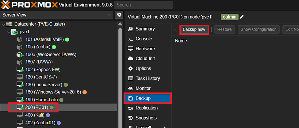 Chọn 1 máy ảo -> Nhấn Backup -> Backup now