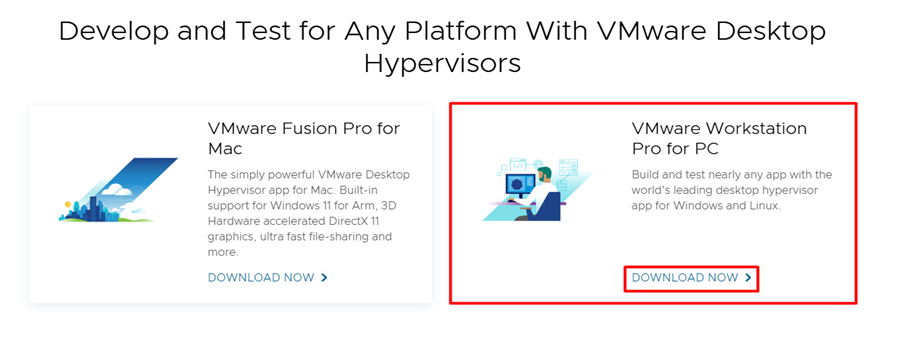 Nhấp vào Download Now dưới mục VMware Workstation Pro for PC