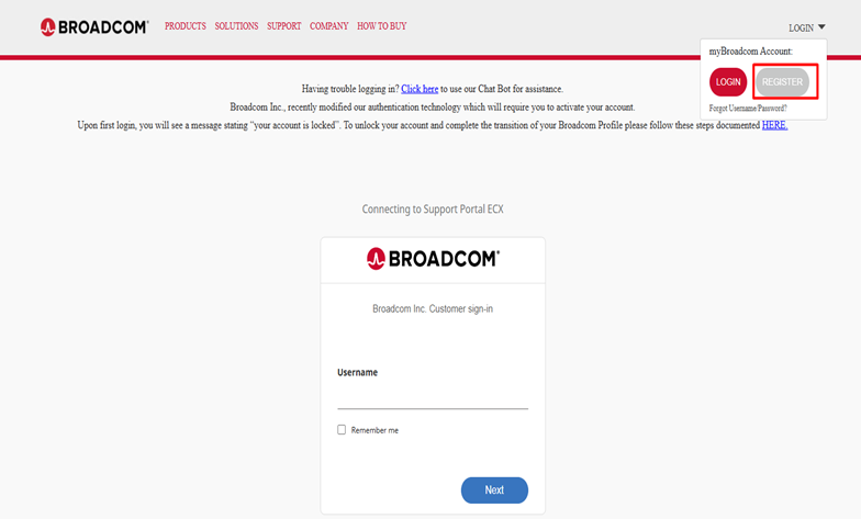 Bạn sẽ được chuyển đến trang đăng nhập Broadcom. Nếu đã có tài khoản, hãy đăng nhập tại đây