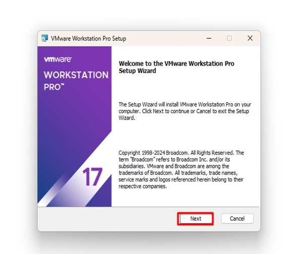 2. Tiến hành cài đặt phần mềm VMware Workstation Pro trên Windows.