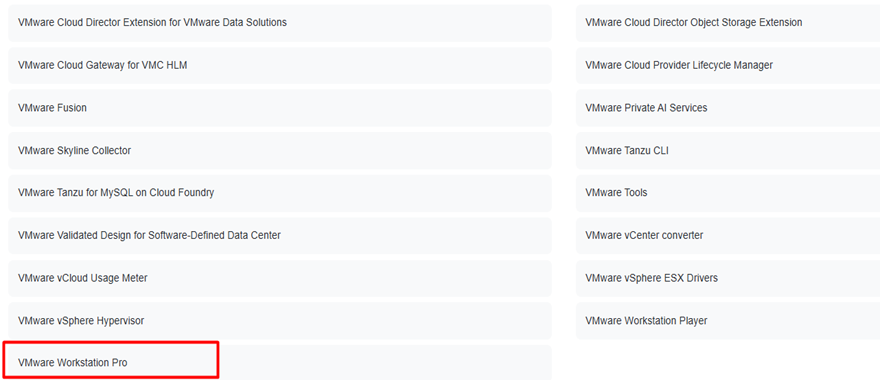 Ở thanh bên trái, nhấp vào mục VMware Products.