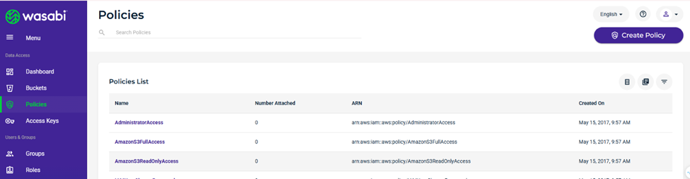 Wasabi IAM Policy có thể gán cho:
