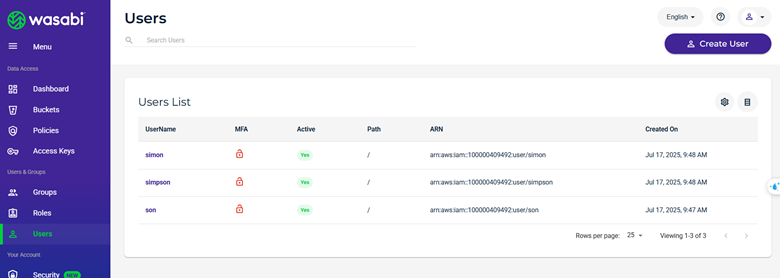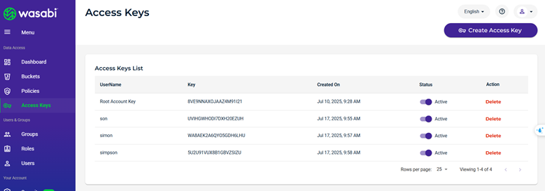 - Đăng nhập vào Wasabi Console với quyền Admin.