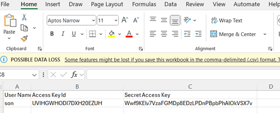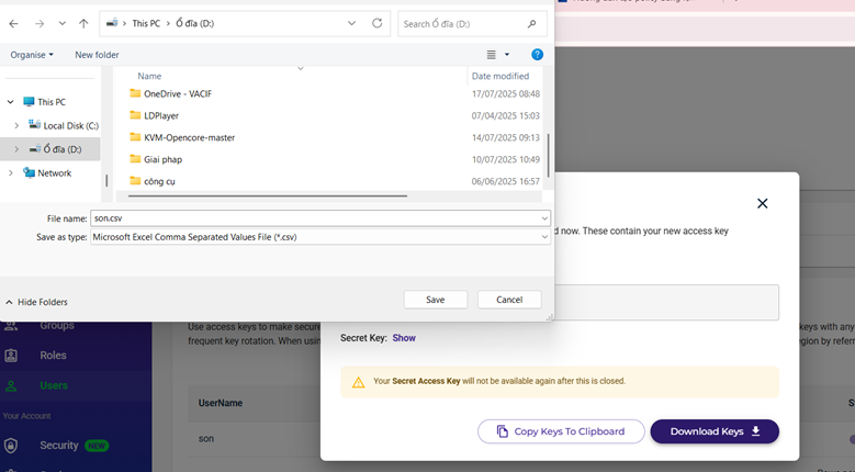 - Tải file .csv chứa key để lưu trữ an toàn.