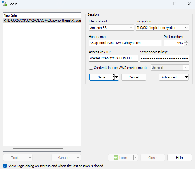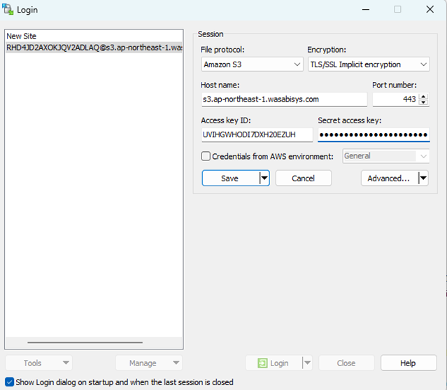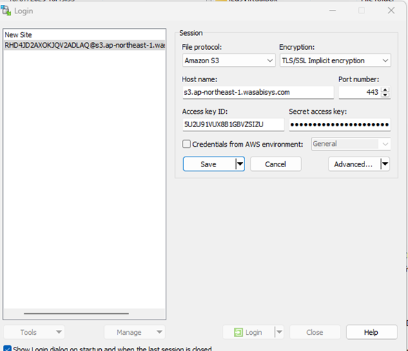 Cấu hình kết nối Amazon S3 trong WinSCP: