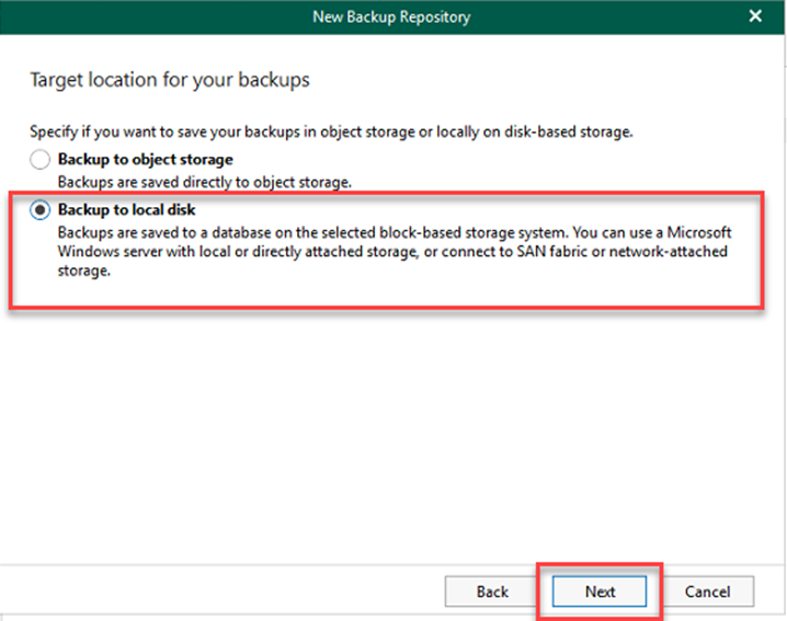 Vì ta đang cần thêm local disk nên ta sẽ chọn dòng Backup to local disk. Ấn Next.
