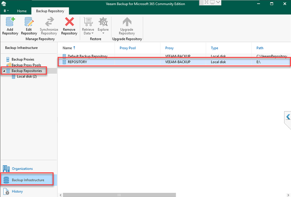 Mặc định khi cài đặt Veeam Backup for Microsoft 365, nó sẽ lấy ổ C là kho lưu trữ mặc định để lưu trữ các file backup. Ta có thể thêm repository khác để lưu trữ và không nhất thiết phải là ổ C. Trong bài viết này, tôi sẽ hướng dẫn cách thêm 1 repository local disk khác để lưu trữ các file backup.