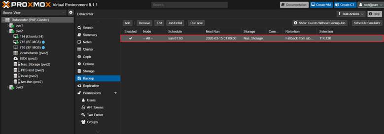• Storage: Chọn nơi lưu trữ file backup (ví dụ: NAS Storage)
