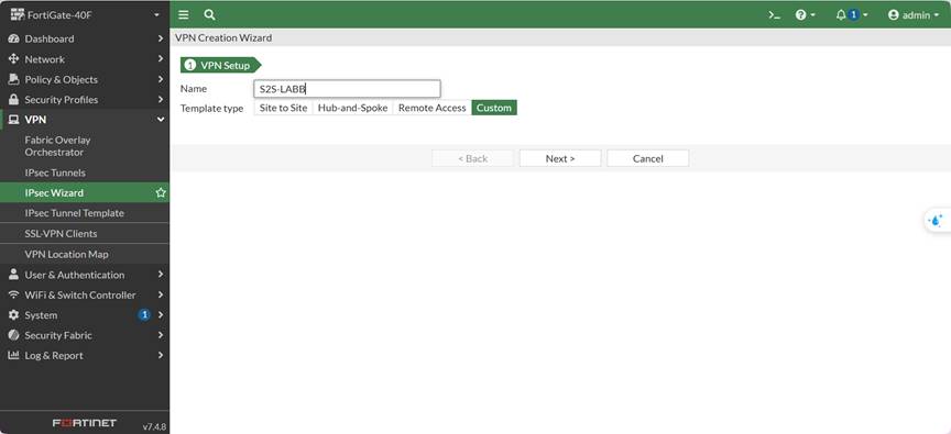 Vào VPN → IPsec Tunnels → Create New → Custom