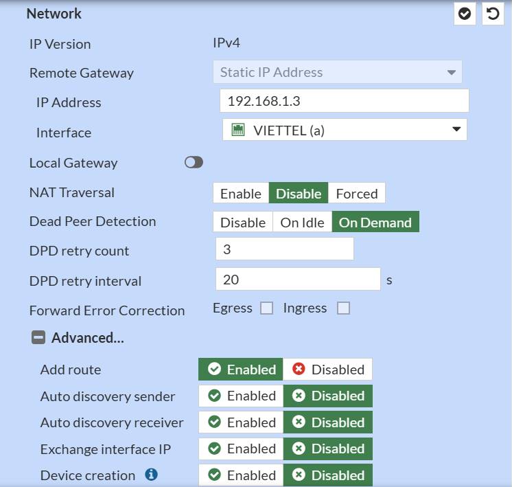 | Pre-shared Key | (ví dụ) FortiSophos@123 |