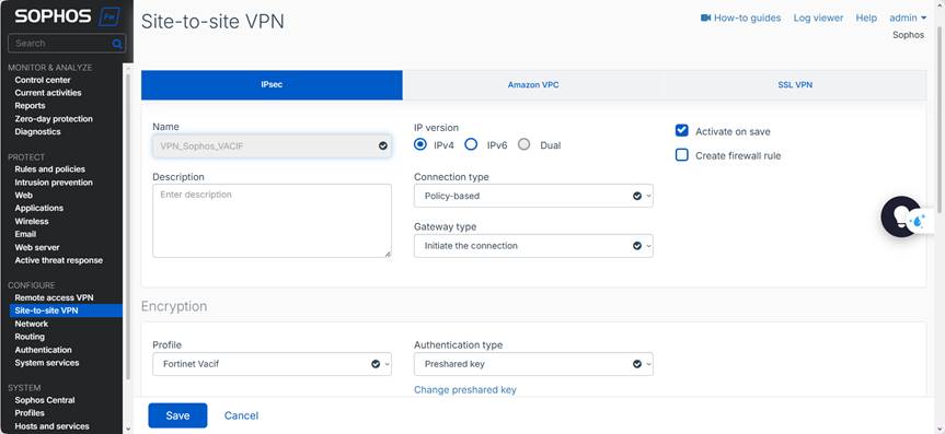 | Pre-shared Key | FortiSophos@123 |