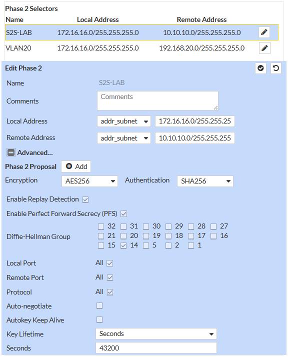 - Mỗi cặp Local/Remote subnet cần 1 selector (Phase 2). Không gộp nhiều subnet nếu thiết bị không hỗ trợ.