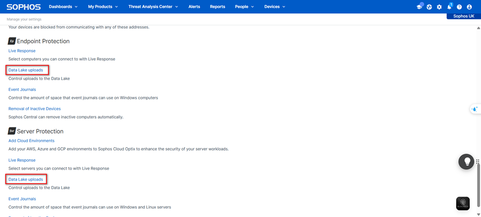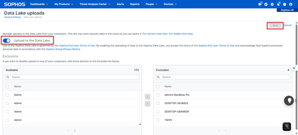 Sau khi bật, thiết bị sẽ tự động đồng bộ dữ liệu (bao gồm danh sách phần mềm, log web…) lên Sophos Data Lake theo định kỳ.