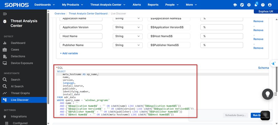 Tài liệu này giúp quản trị viên truy vấn các phần mềm/ứng dụng đã được cài đặt trên các endpoint trong tổ chức thông qua Sophos Data Lake. Việc truy vấn được thực hiện tại trung tâm dữ liệu tập trung của Sophos, cho phép truy xuất thông tin từ nhiều endpoint một cách đồng bộ mà không cần kết nối trực tiếp.