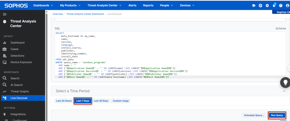 Truy cập vào “Threat Analysic Center” → “Live Discover”.