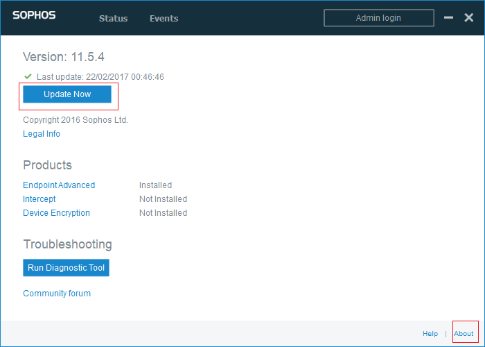 Thường thì đây cũng là nơi bạn có thể xem trạng thái hiện tại của phần mềm diệt virus, phiên bản phần mềm hiện tại, cập nhật thành công cuối cùng, và lịch sử các mô-đun đã được cập nhật trước đó.