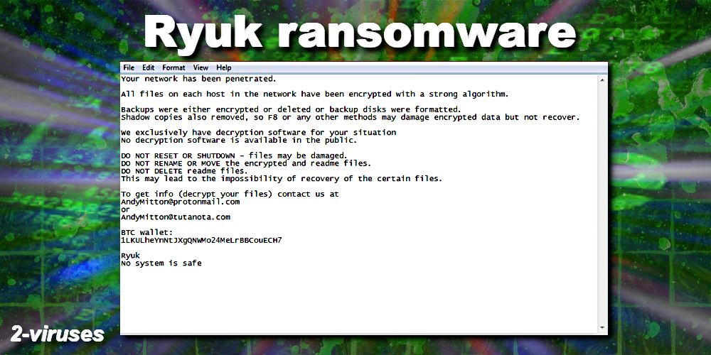 Mô tả: Ryuk là một loại ransomware do con người điều hành đã xuất hiện vào cuối năm 2018 và nhanh chóng trở thành một trong những mối đe dọa lớn đối với các tổ chức và doanh nghiệp trên toàn cầu. Được cho là do một nhóm hacker chuyên nghiệp từ Nga hoặc Bắc Triều Tiên điều hành, Ryuk đã gây ra hàng triệu đô la thiệt hại trong việc yêu cầu tiền chuộc từ các nạn nhân.